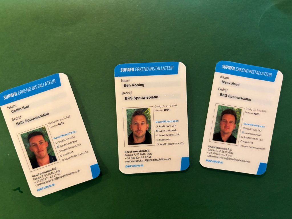 Recent heeft ons team een cursus van Knauf afgerond. Deze cursus ging onder meer om het vullen van spouwen met Supafil en oplossingen voor verdiepingsvloer isolatie. Zo zijn wij altijd op de hoogte van de laatste ontwikkelingen op gebied van isolatie en isolatiemateriaal.